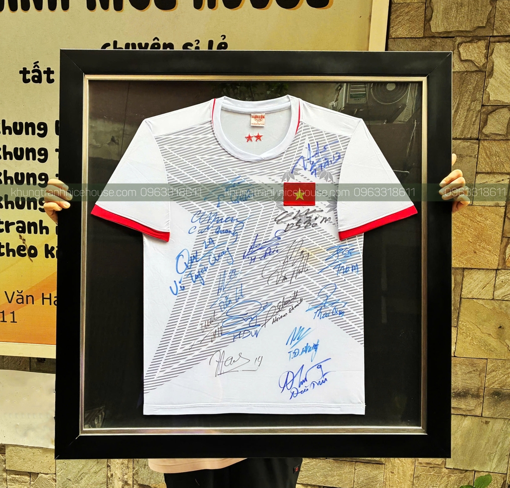 Khung áo đấu đội tuyển việt nam viền đen chỉ bạc