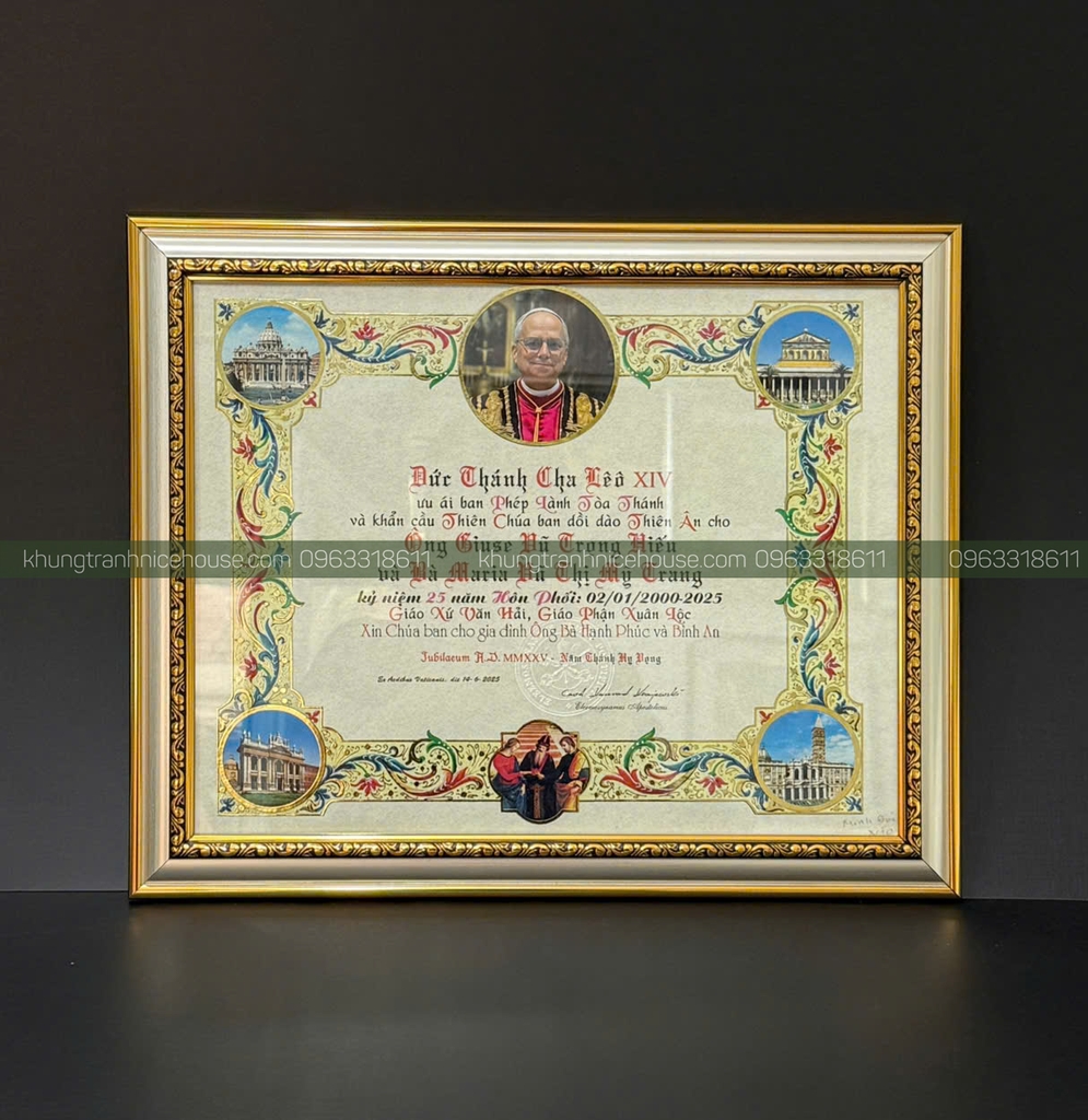 Khung Bằng Ân Nhân Công Giáo là lựa chọn trang trọng để tôn vinh và lưu giữ giá trị tinh thần của các ân nhân. Tại Nice House, chúng tôi chuyên nhận đóng khung Bằng Ân Nhân theo mọi kích thước yêu cầu, đảm bảo thẩm mỹ, độ bền cao và dịch vụ giao hàng nhanh tại TP.HCM.