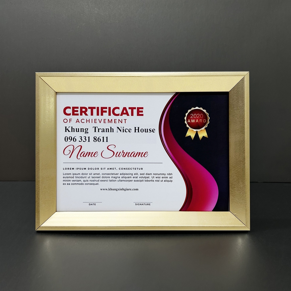 Khung Bằng Khen Màu Vàng Nhạt CV02