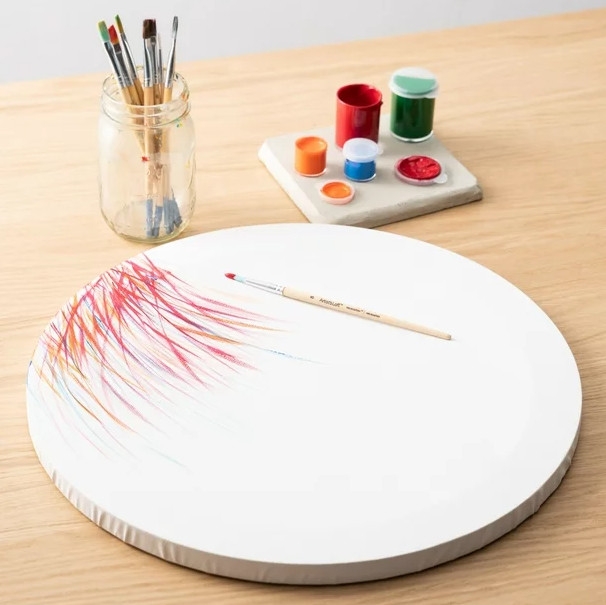 Vải canvas tạo ra những nét cọ đẹp sẽ cho ra những tác phẩm nghệ thuật đặc sắc dành tặng cho bạn bè và người thân. Nổi bật với khung gỗ với bề mặt vải trắng được bọc hình tròn đáng yêu, để làm nổi bật thiết kế của bạn.